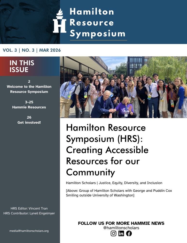 The Hamilton Resource Symposium is a set of archives created BY Hammies FOR Hammies. This aspect of the Justice division aims to collect and highlight resources provided by our scholars to be shared with the rest of the community.
